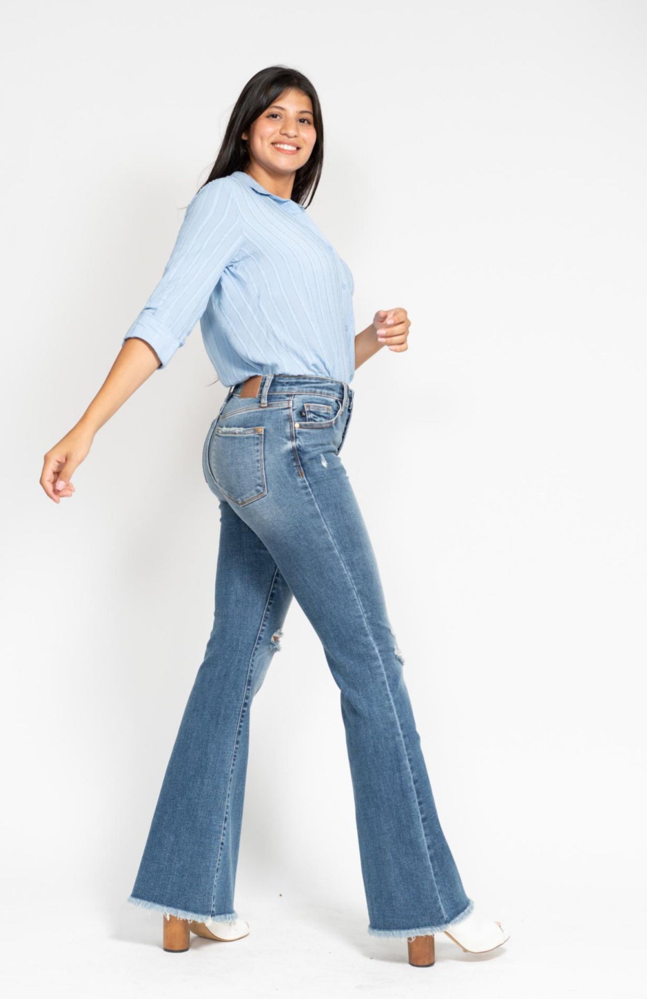 Mid Rise Button Fly Flare with Frayed Hem